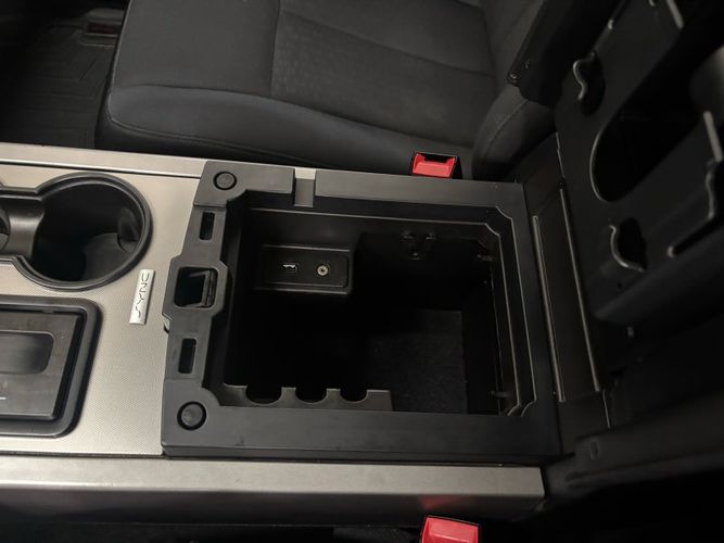 Floor console storage: Covered floor console storage