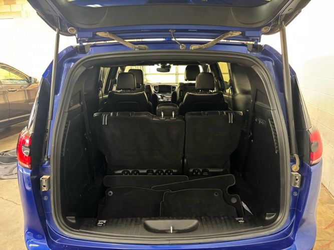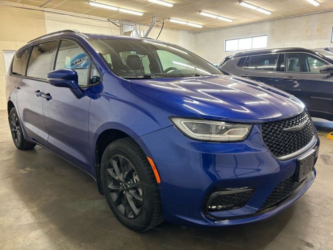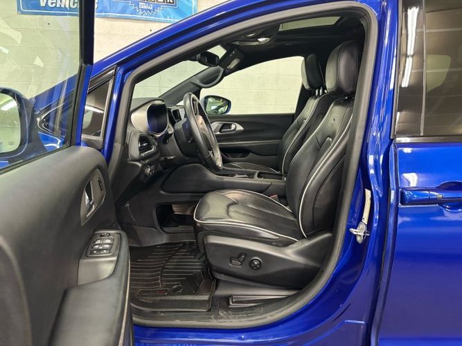 Experience the perfect blend of luxury and versatility with the 2021 Chrysler Pacifica Limited, an exceptional choice for families seeking style and functionality. Dressed in a stunning Ocean Blue Metallic Clear Coat, this minivan stands out with its S Appearance Package, featuring sleek black accents and premium aluminum wheels. The AWD drivetrain powered by a robust Pentastar 3.6L V6 engine ensures you have both power and control on any journey. Inside, indulge in comfort with premium leather-trimmed bucket seats while enjoying entertainment from the UConnect Theater Family Group's advanced multimedia system. This vehicle also comes with built in vacuum and attachments.